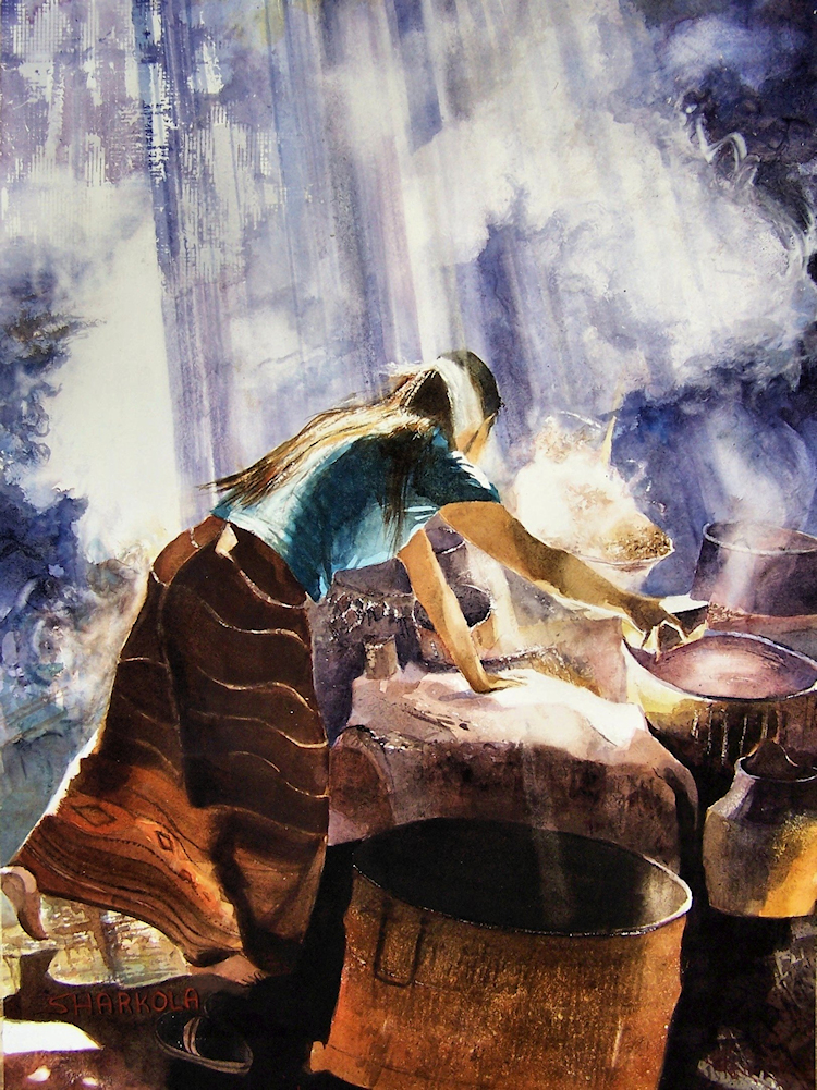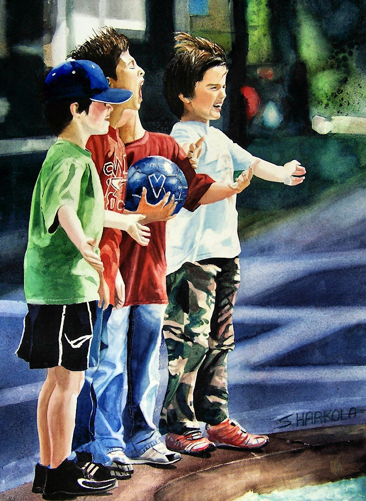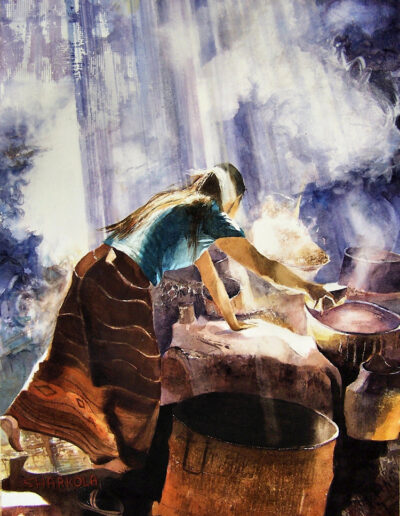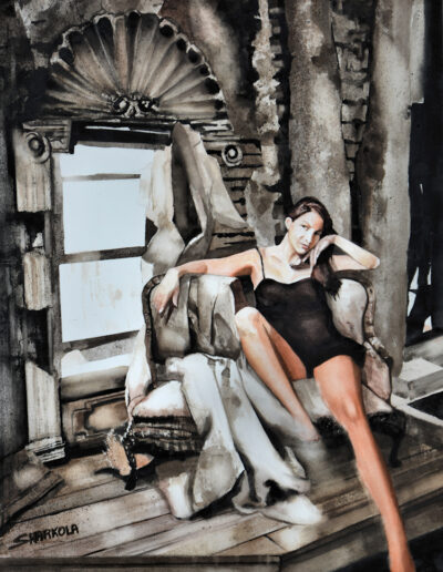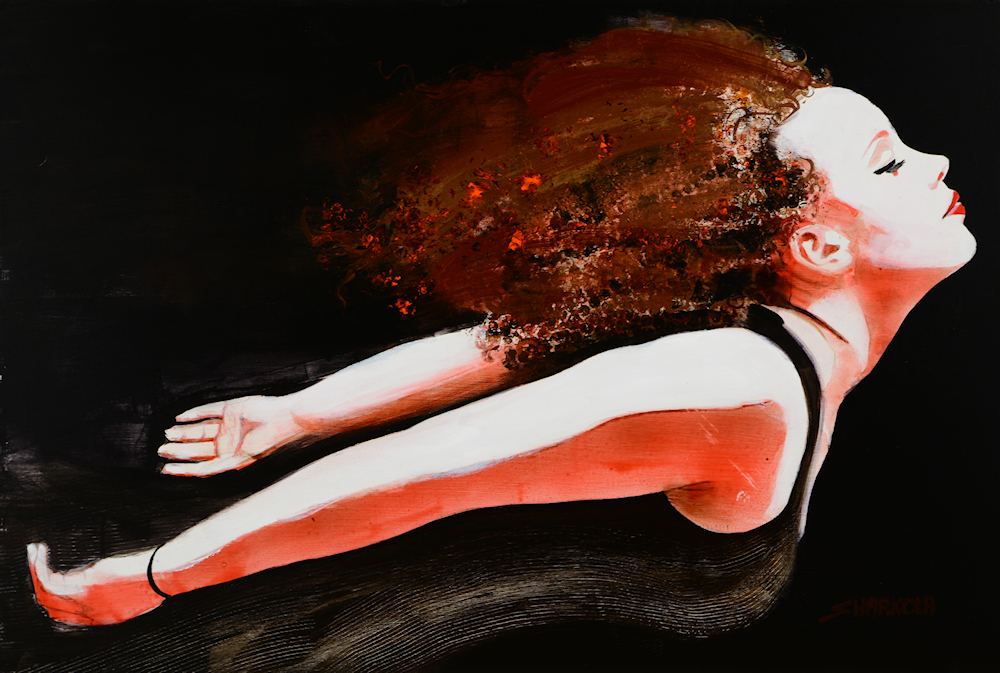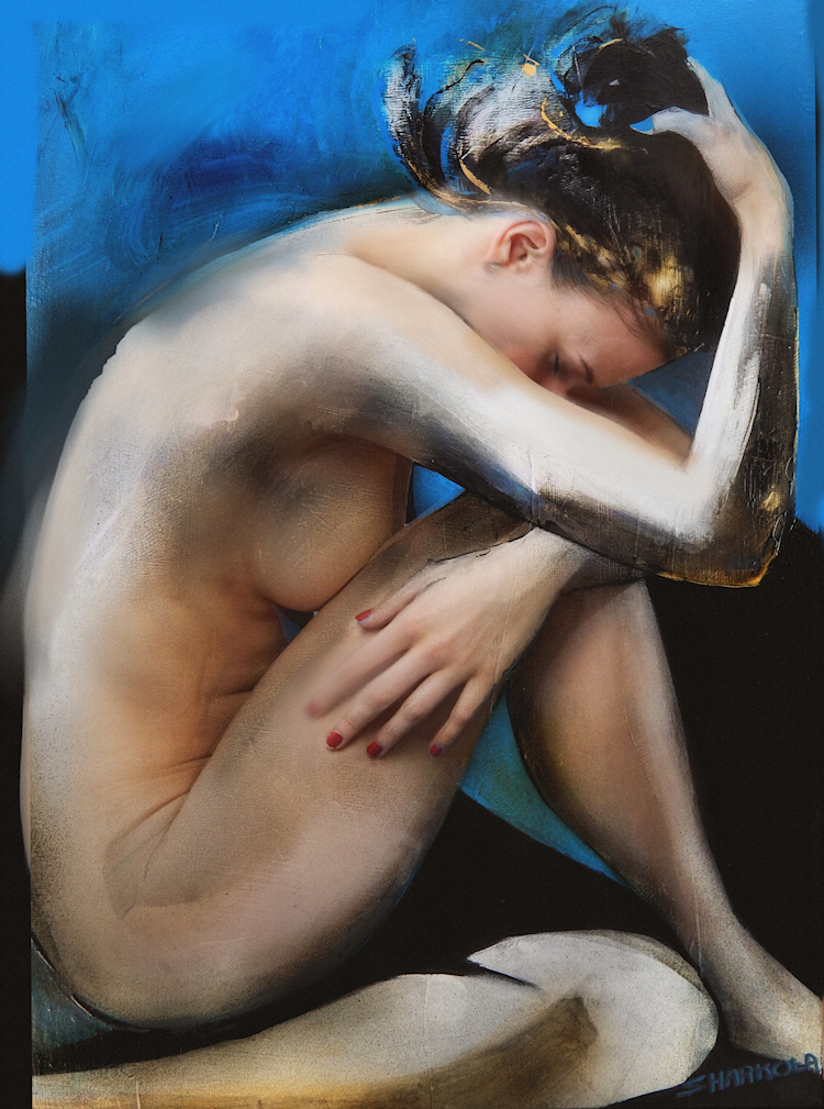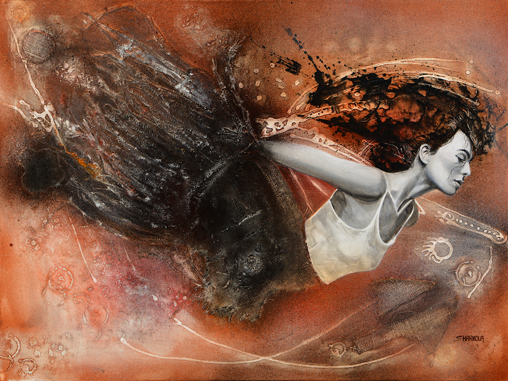 Stephens’s acrylic and watercolor figure work tends to be more abstracted than the oil portraits and is influenced by his organic landscape work. Water based media by definition is more fluid, they dry faster and lend themselves to multiple layer application. Using bigger brushes, sprayers, rollers, pallet knives, even fingers – paint is applied transparently during multiple sessions until an image emerges. Its surprising what can happen when you let go. To purchase original figure work or Giclée prints, contact the artist or visit https://www.saatchiart.com/harkola2 for more information.
